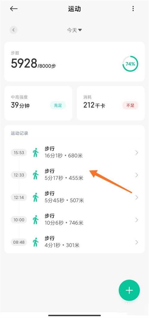 在历史记录中找到需要调整的某次步行数据,点击进入详情页。