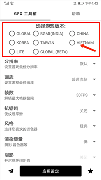 启动应用后,在首页直接选择对应的游戏服务器区域,例如越南服、韩服、台服或国服等,不同版本适配独立参数方案,确保设置精准生效。