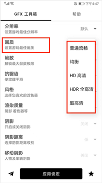点击任意参数右侧的展开图标,如画质选项,即可看到从普通流畅到超高清的多级画质档位,每档对应不同的GPU负载与画面细节表现,用户可根据设备实际发热与续航情况灵活选取。