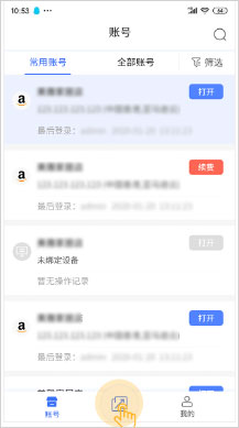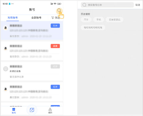 点击搜索图标,输入账号名称即可快速检索。