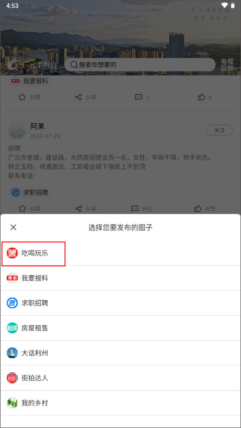 系统会自动弹出可选的圈子分类,根据内容选择合适的圈子后点击确认。