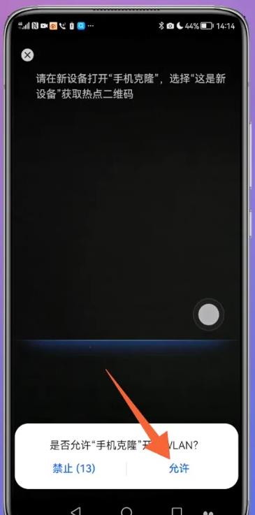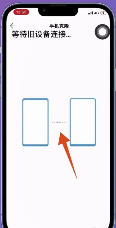 使用旧手机扫描新手机屏幕上显示的二维码,完成两台设备的连接。