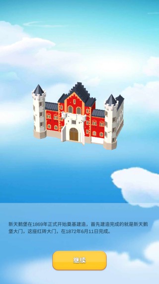整座建筑拼装完毕,画面缓缓旋转,同时弹出一段关于该建筑的冷知识或建造轶事。