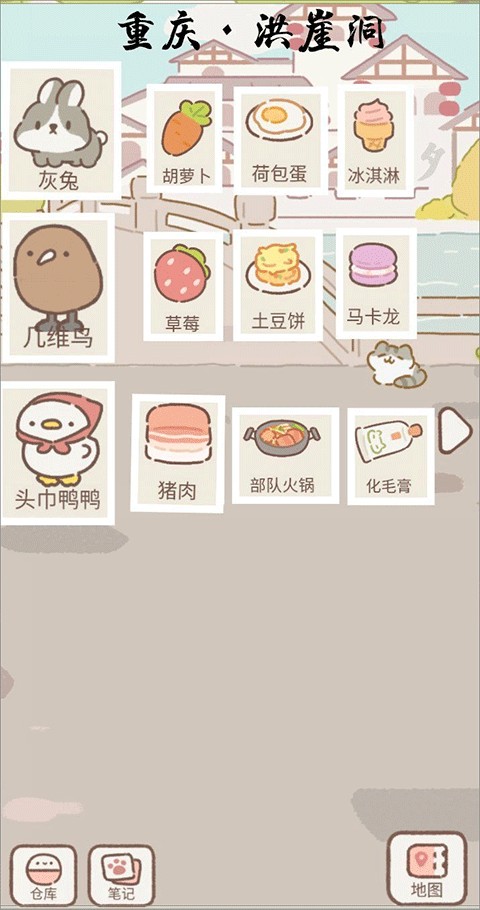 重庆-洪崖洞 灰兔偏爱胡萝卜、荷包蛋与冰淇淋;几维鸟钟情草莓、土豆饼和马卡龙;头巾鸭鸭则对猪肉、部队火锅与化毛膏念念不忘。