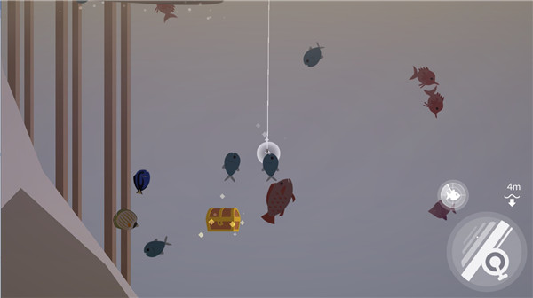 海面随机漂浮着各式宝箱,靠近后自动拾取,内含金币、鱼饵或稀有配件。
