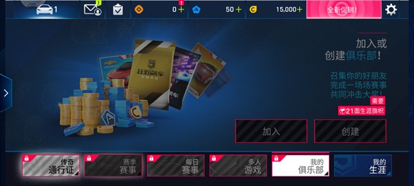 每日赛事同样是稳定获取金币的途径。该玩法包含速度赛事与活动赛事两种类型。速度赛事提供单人奖励,只要在规定时间内完成比赛即可领取金币;俱乐部奖励则需满足成员参与人数及成绩要求。活动赛事除单人和俱乐部奖励外,还设有基于完赛时间的排名奖励,即使成绩靠后也能获得保底金币,确保每位参与者都有收获。