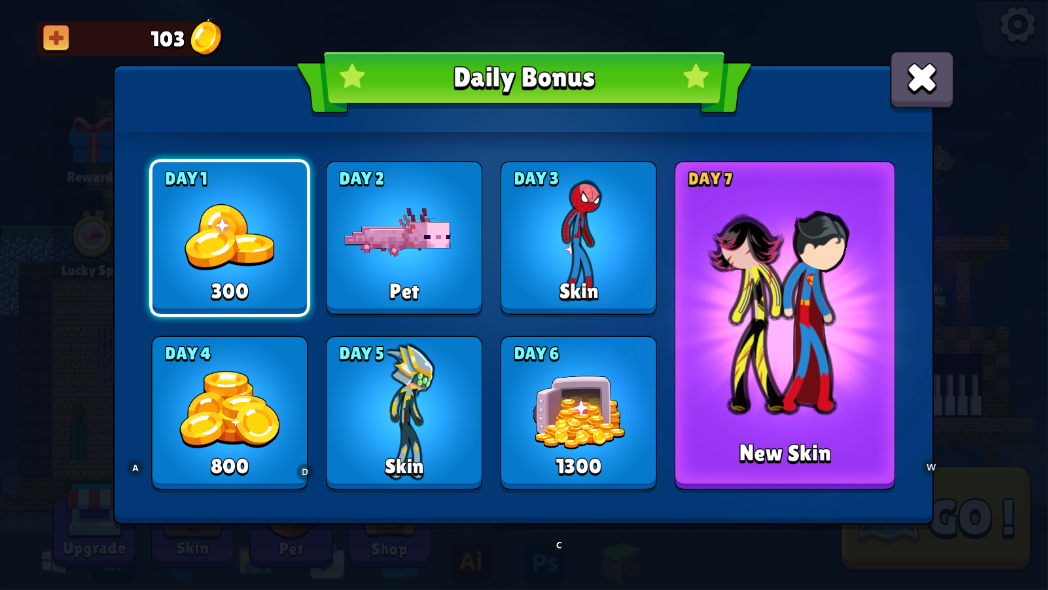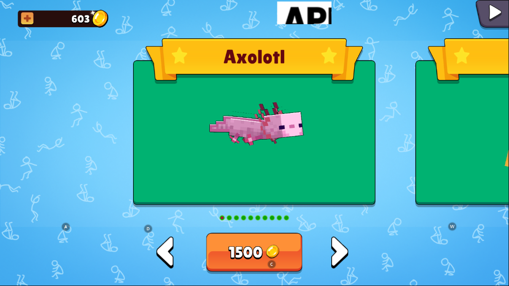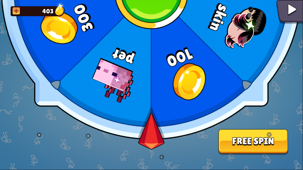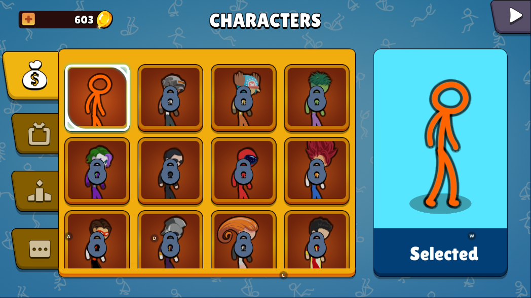 在“Skin”皮肤界面,使用积累的金币购买心仪的角色外观,打造专属火柴人。