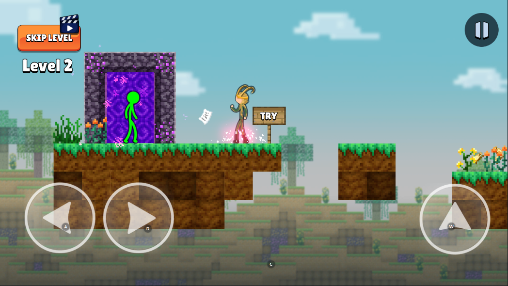 支持二段跳等进阶操作,让火柴人在空中灵活腾挪,探索更远路径,乐趣十足。