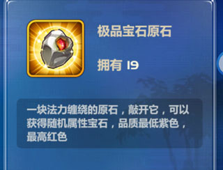 宝石通过开启宝石原石获得,原石按品质分为普通、高级、极品三类。普通原石可开出绿至红品质宝石,高级原石最低产出为蓝色,极品则更高概率获得橙红品质。使用更高品质的原石,有助于稳定获取强力宝石。