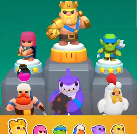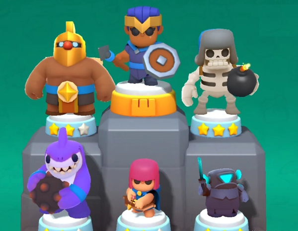 游戏中不少角色形象源自《皇室战争》与《海岛奇兵》,熟悉的角色如野蛮王、盾少女、弓箭女王和巫师等悉数登场。