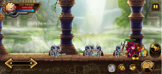 操作针对移动设备优化,采用全屏触控移动与虚拟按键结合的方式。左下角控制方向,右下角集成攻击、跳跃与技能按钮,布局合理,不遮挡战斗视野,操作流畅直观。