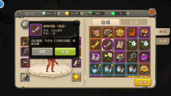 成功击败土熊后,可根据难度开启对应宝藏——中级、高级或超级宝藏。开启中级宝藏无需道具;高级宝藏需消耗高级兽骨钥匙;超级宝藏则需超级兽骨钥匙。钥匙可通过日常活动或任务获取。