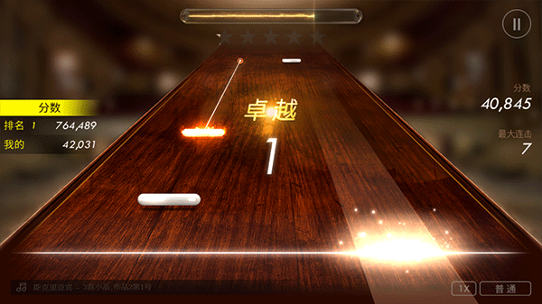 进入演奏界面后,依照所学操作完成整首曲目,争取高分通关;