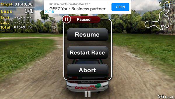 如需中途退出,可点击屏幕中央暂停按钮,随后选择abort结束当前赛事