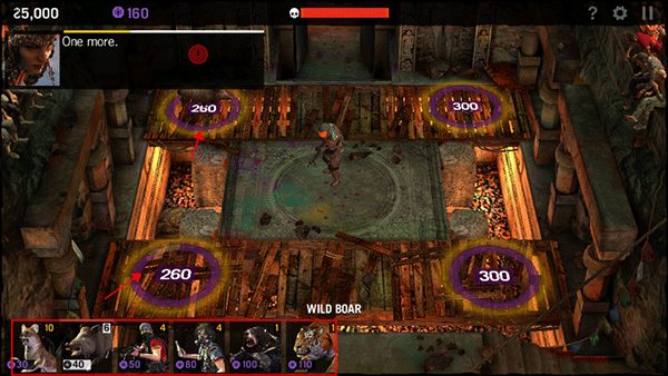 剧情结束后,需将下方显示的怪物拖拽至指定圆圈区域进行部署;